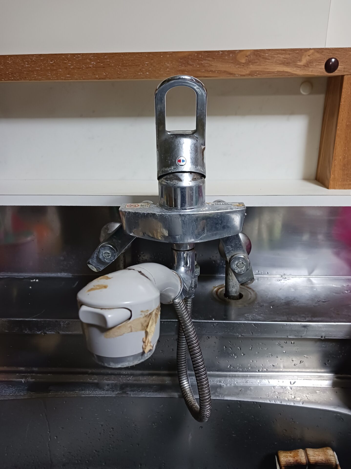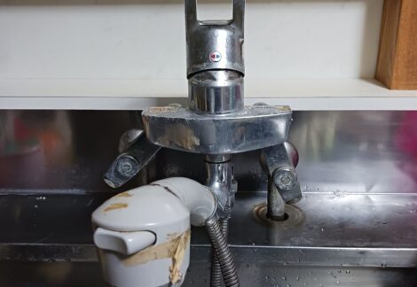 キッチン混合栓に不具合が発生していたため、本体の交換を行いました。